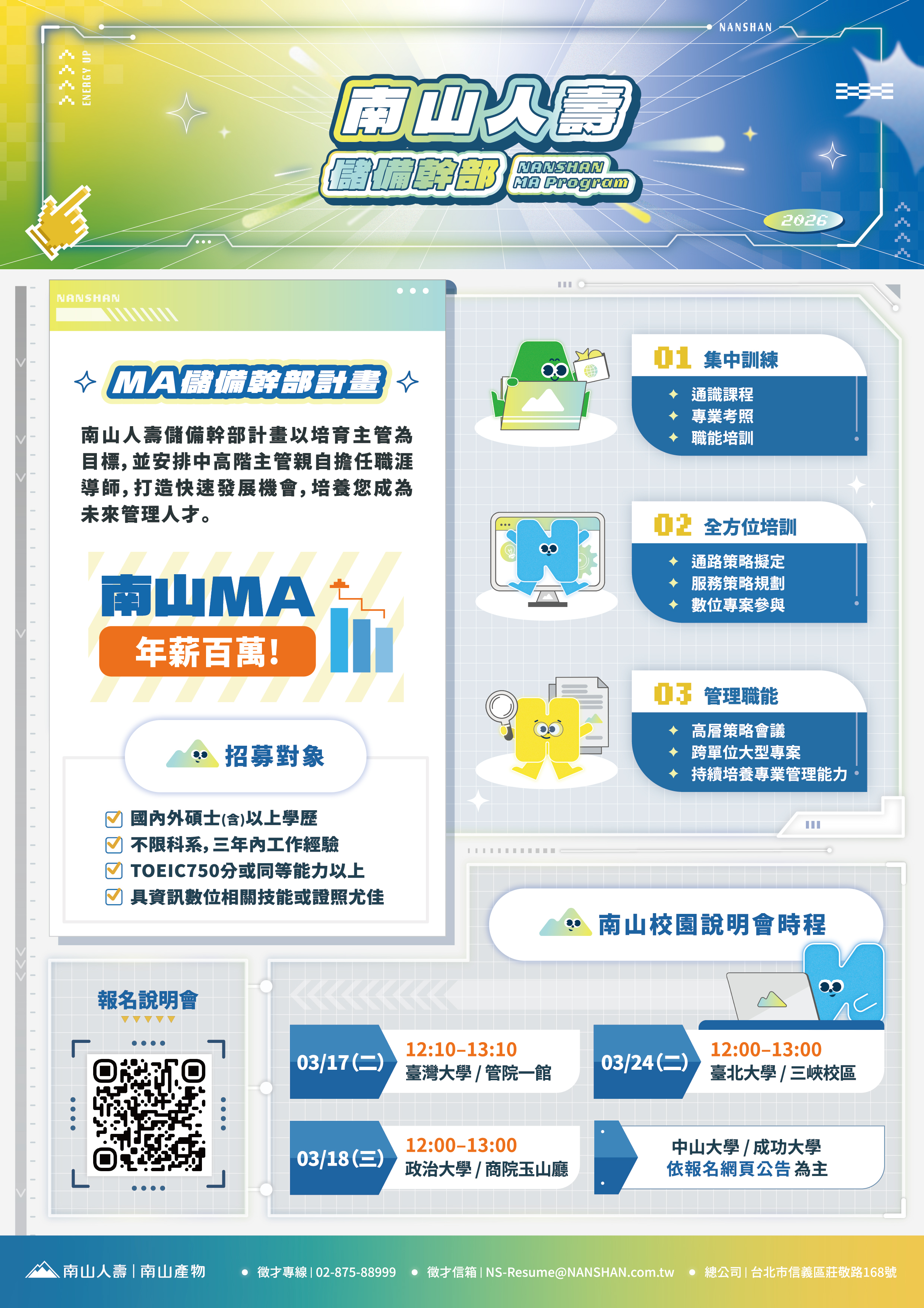 【轉知公告】2026南山人壽「內勤」儲備幹部MA Program暨實習生計畫招募