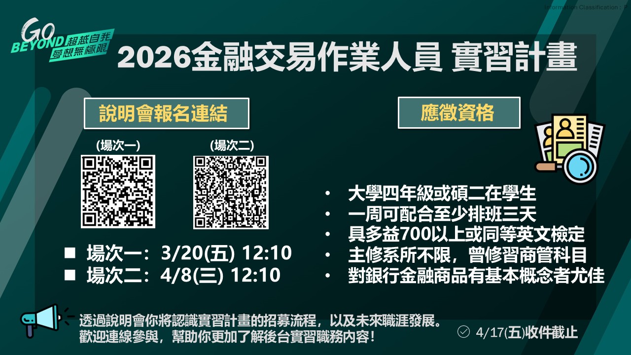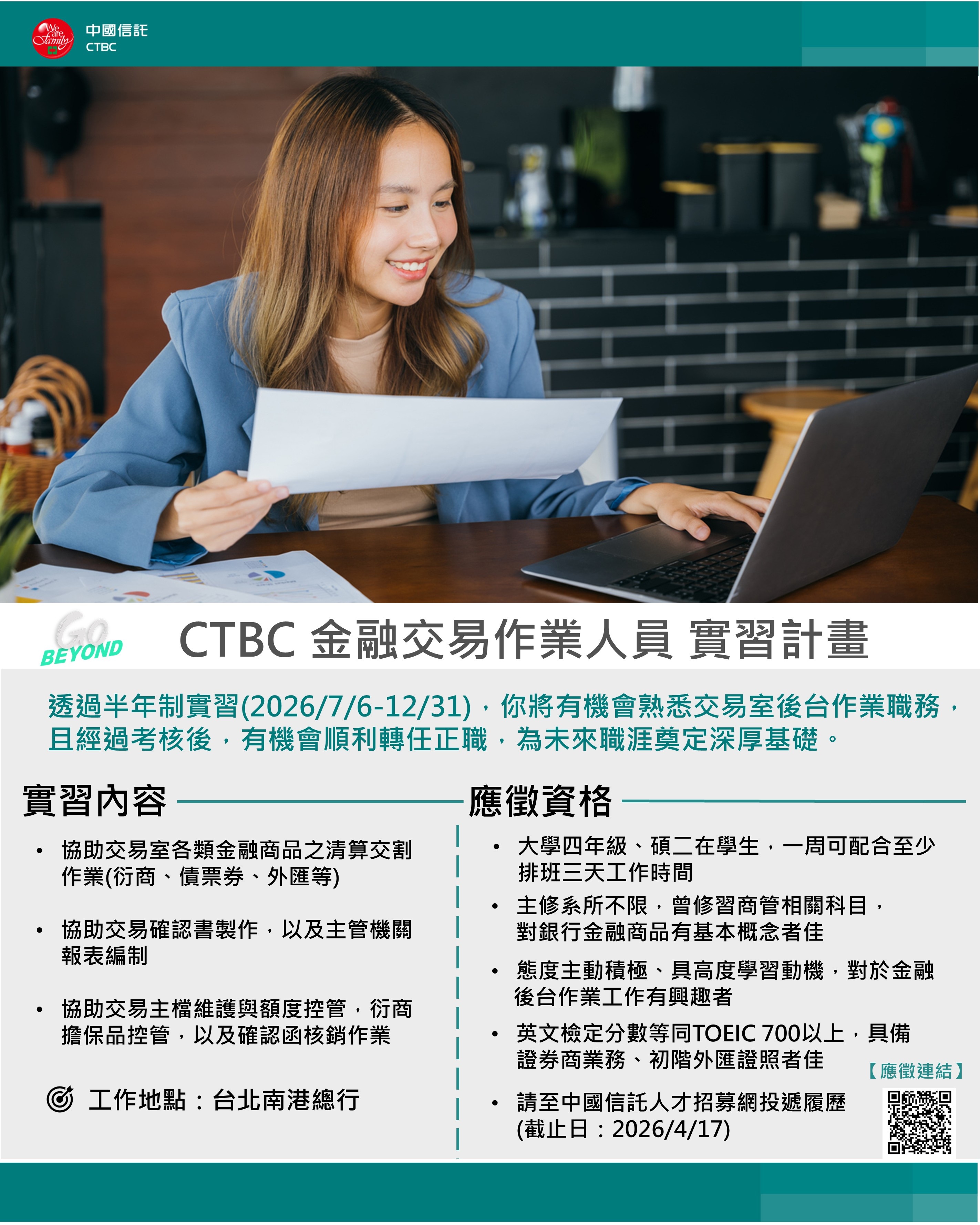 聯絡人:HR 宮小姐 paohui.kung@ctbcbank.com